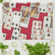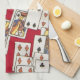16" x 24" serviette de cuisine avec une Alice vintage dans l'image du pays des merveilles des cartes de jeu sur le rouge. Serviette assortie de tissu See, serviette de papier de cocktail, set de table de tissu, set de table de papier et dessous de verre. Voyez la collection entière de serviette de cuisine du pays des merveilles dans la section de toiles de FOOD/BEV |.