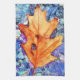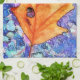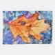 Une jolie aquarelle d'une feuille d'automne brune contre un arrière - plan d'eau bleue.