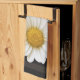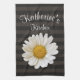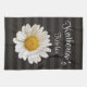 Une photo de gros plan d'une belle fleur marguerite blanche avec un nom personnalisé sur un arrière - plan rayé foncé.
