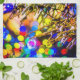 Arbre de Noël et boule de décoration rouge recouverte de neige fraîche. Lumière colorée autour. Humeur joyeuse et joyeuse. Joyeux Noël Et Bonne Année. Bonnes Fêtes. Imprimez et offrez des cadeaux pour le plaisir et la bonne humeur. Produits horizontaux ou paysagers et souvenirs.