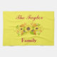 Un beau design de tournesol, cette serviette de cuisine dispose d'un texte personnalisé pour écrire votre nom en bordeaux. L'arrière - plan est jaune avec votre nom de famille écrit en lettres cursives au-dessus du tournesol. En-dessous se trouve "Famille". Ajoute beaucoup à vos articles de cuisine. Commandez les vôtres dès aujourd'hui ! Conception de tournesol créée par : AMBillustrations http://www.etsy.com/shop/AMBillustrations