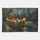 Jetez un coup d'oeil à la magie de la saison des Fêtes avec cette illustration magnifiquement détaillée, montrant un chien fier assis dans un bateau à la décoration festive, glissant à travers un lac serein de Noël. Les lumières scintillantes des pins voisins se reflètent dans l'eau, projetant une lumière chaude et festive qui renforce l'ambiance cosy. Des ornements pendent des côtés du bateau, tandis que des lanternes brillantes éclairent le chemin, créant une scène qui capture l'essence véritable de la chaleur et de la joie de Noël. Cette oeuvre nostalgique apporte une touche de magie de vacances à tout espace, parfait pour ceux qui chérissent l'esprit de la saison.