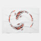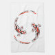 Serviette de cuisine avec une paire de poissons koi noirs et rouges nageant et tournant autour de l'autre. Design minimaliste simple.