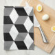 Linge De Cuisine Blanc et gris de noir de motif de cube