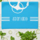 Elégante ancre blanche de bateau nautique avec rayures blanches sur arrière - plan bleu personnalisé vous pouvez changer. monogramme personnalisé et optionnel.