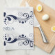 Linge De Cuisine Bleu foncé Élégant Flore Fils Cadre Monogramme