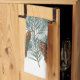 Jolie serviette d'hiver blanche avec pinecones et branches rustiques en bois. L'accessoire de cuisine idéal pour les vacances d'hiver !