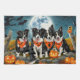 Libérez l'esprit éffrayant avec ce design d'Halloween étrange avec une meute de chiens sous un ciel sombre et clair de lune, entourée de chauves-souris volantes et de citrouilles brillants. Parfait pour ceux qui aiment une touche de plaisir effrayant avec leurs amis en fureur !