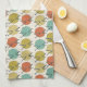 Boules illustrées de laine dans le motif de point de polka sur la serviette de cuisine colorée et originale .