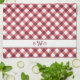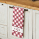 Linge De Cuisine Buffle rouge et blanc posé trois premiers monogram