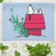 Profitez de ce design de vacances Peanuts avec Snoopy dormant sur sa maison de chien à côté de son arbre de Noël.