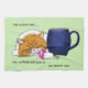 Un chat orange et blanc qui veut se réveiller car ils sont encore très fatigués et allongés à côté d'une grande tasse de café