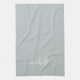 Élégant Chic Moderne Vert Sauge Monogramme Nom Signature Script Serviette de Cuisine Personnalisée. Avec un nom personnalisé dans une calligraphie de police à queue (ou typographie) à la main sur fond de couleur vert sauge ou vert poussiéreux. Ceux-ci sont faciles à personnaliser. Cadeau de pendaison de crémaillère féminin élégant, également pour un anniversaire, un mariage, la fête des mères, une douche de mariée et c'est pour la fille qui aime les choses féminines minimalistes uniques.