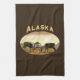 Deux taureaux de caribou luttent pendant l'automne rut dans l'extrême nord tandis que le soleil se couche dans l'arrière - plan. Le texte "Alaska" apparaît également.