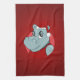 Serviette de cuisine avec l'illustration d'un joli hippopotame avec un casquette du Père Noël rouge et blanc ; conception de vacances de Noël pour les enfants, sur un arrière - plan rouge