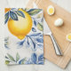 Serviettes de cuisine au citron en carreau méditerranéen bleu et blanc. Magnifique fond de citrons peints. Vous pouvez ajouter du texte pour personnaliser.