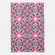 Serviette de thé dans un motif en carrelage Art Déco marocain à base de fleurs stylisées et feuilles - rose fuchsia, gris argenté / gris et rose doux, accentué de blanc