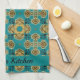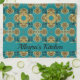 Belle tuile marocaine inspiré motif en or et turquoise. Personnalisez avec votre nom de destinataire. Ajoutez un style ethnique et élégant à votre décor de cuisine !