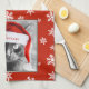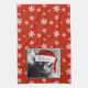 Cute serviettes de cuisine personnalisées de Noël. Chat noir avec casquette de Noël (personnalisé avec n'importe quel nom, si désiré). Chat de Noël sur une serviette rouge parsemée de flocons de neige. Grand cadeau d'hôtesse à donner, ou à garder pour vous-même!