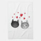Linge De Cuisine Chats noirs et gris mignons, avec des coeurs