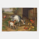 Une belle peinture vintage de chèvres et poulets à la ferme. Date entre 1800 et 1900.