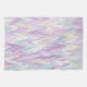 Un chevron abstrait dans une palette violette, turquoise, ivoire et blanche.