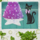 Linge De Cuisine Christmas Black Cat Pink Silver Tree Teal Room