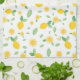 Serviette de cuisine motif moderne aux citrons frais et aux feuilles vertes.