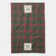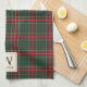 Serviette de cuisine sur mesure pour la saison des fêtes avec boisé de style classique vert et rouge de Noël plaid avec initiale et nom personnalisés.