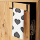 Cette serviette de cuisine dispose d'un motif extensible de coeurs noirs bicolores sur un arrière - plan blanc.