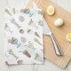 Crème glacée et collage délicieux mignons et illustrés de gâteau sur la serviette de cuisine décorative.