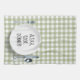 Commande de dispositif électronique Alexa pour dîner de cuisine sur une assiette blanche et un motif vert et blanc sauge en vichy. Le texte sur la plaque peut être modifié.