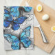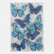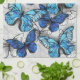 Composition verticale de papillons morpho réalistes, bleus et blancs sur arrière - plan texturé gris. Papillon bleu morpho.