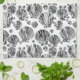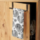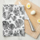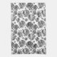 Serviette de cuisine dans un motif de noir, blanc, et les nuances d'argent à graphite gris / gris coquillages semi-abstraits sur un arrière - plan blanc