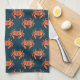 Serviette de cuisine motif crabe de mer dans les tons marron, rouge et orange sur arrière - plan bleu foncé. Éléments correspondants disponibles. Art original d'artistes propres illustrations. Veuillez utiliser le bouton Message me ci-dessous pour obtenir de l'aide sur la personnalisation et les demandes spéciales. © Zoe Chapman Design