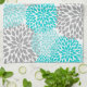 Un de mes dessins originaux dans un design de dahlias fleuris et tendance en turquoise et gris.