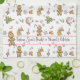 Theme Parties' Baking Spirits Bright cuisine towel design dispose d'icônes de Noël dessinées à la main, dont un homme en pain d'épice, Père Noël, arbre de Noël et une typographie amusante lettrée à la main. #BakingSpiritsBright #Gingerbread #HolidayBaking