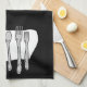 Un design simple avec un ensemble d'argenterie sur une jolie serviette blanche ornée de gris et de noir. Customiser pour ajouter votre nom ou votre message
