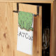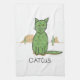 Cette serviette drôle comporte un dessin simple d'un vert, d'un cactus chat-formé, ou d'un "catcus." Le catcus apparaît dans le premier plan avec deux cactus réguliers dans la distance, devant deux MESAs. Une serviette pour n'importe qui une qui apprécie la nature souvent épineuse des chats.
