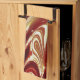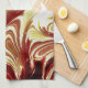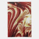 Un design artistique abstrait d'eau de rivière tourbillonnante aux couleurs rouge, or et blanc.