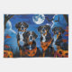 Libérez l'esprit éffrayant avec ce design d'Halloween étrange avec une meute de chiens sous un ciel sombre et clair de lune, entourée de chauves-souris volantes et de citrouilles brillants. Parfait pour ceux qui aiment une touche de plaisir effrayant avec leurs amis en fureur !