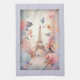 A kitchen towel with a stylized Eiffel tower image surrounded by pretty butterflies and delicate garden flowers.