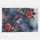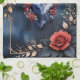 Elégant agencement rose avec feuillage doré sur un arrière - plan d'aquarelle bleu foncé. Un design élégant et décoratif avec des roses rouges, des feuilles foncés et des touches dorées contre un arrière - plan bleu foncé et aquarelle. Le cadre doré délicat et le placement équilibré des fleurs confèrent au motif un charme raffiné et sophistiqué. Parfait pour tous ceux qui aiment l'art floral élégant, les roses romantiques et les contrastes de couleurs luxueux. Idéal pour l'art mural, la décoration maison, les accessoires de mode et les cadeaux avec une touche de sophistication.
