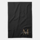 Moderne élégant élégant noir monogramme or noir Nom du script Serviette de cuisine
