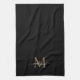 Moderne élégant élégant noir monogramme or noir Nom du script Serviette de cuisine