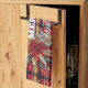 Serviette de cuisine festive avec un luxueux motif de plaid rouge et or. Ce design allie un plaid intemporel et un charme festif, ce qui en fait un élégant pour la saison des fêtes.