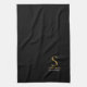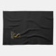 Elegant Stylish Black Gold Monogram Script Name Kitchen Towel.