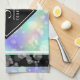 Célébrez le 34ème anniversaire du mariage opal avec cette serviette élégante ! Le lettrage noir et blanc élégant avec des confettis hexagonaux sur un arrière - plan opal irisé bordé de barres noires et blanches ajoute une touche mémorable à cette occasion spéciale et extraordinaire. Personnalisez avec les noms et les dates du mariage du couple. Design © W.H. Sim. Voir plus sur zazzle.com/expressionsoccasions