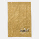 Élégante serviette de cuisine en parties scintillant dorée avec un monogramme en écriture blanche et un nom noir. Personnalisez avec votre initiale et votre nom.