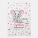 L'adorable dessin de statistiques de naissance de petite fille avec un dessin mignon d'éléphant avec des oreilles roses et des étoiles en rose foncé et clair et couleur crème. Facile à personnaliser en remplaçant le nom et les détails par le vôtre.